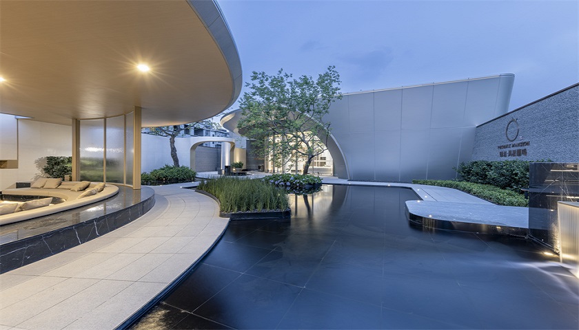 作为归家的“颜值担当”,入户大堂以“游艇”作为视觉符号,外观上运用了大量的圆弧和曲面设计,整体形成流畅而具有张力的曲线序列,呈现出一个超前、独具未来感的建筑形象,引领时代的美学力量。