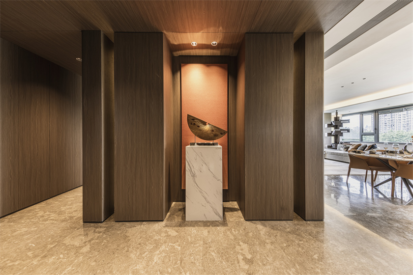 从装修设计到细节打磨,从天花板到墙面再到入户门,打造的不仅仅是简单的过渡空间,而是车库、会客厅、候梯厅的完美结合。双大堂归家,在迎来送往中,尽显主人家的气派。