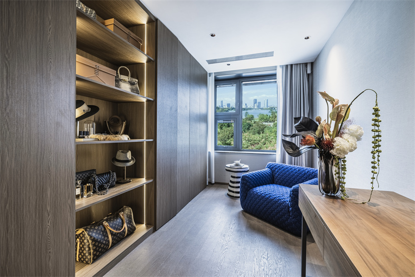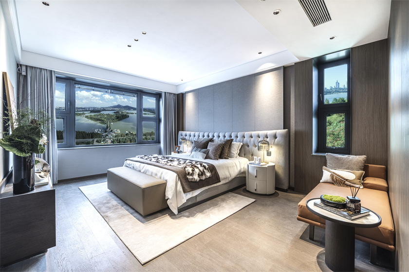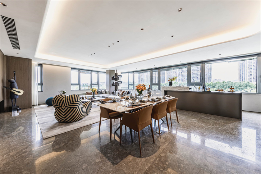 为了不辜负窗外秦淮河的景观资源,绿城·凤栖潮鸣创新“Amazing户型”,打造270°环幕落地全景大客厅,超转角全景视野,让滨水生活成为家里的永恒艺术品。LDKG一体化设计,客厅天然大理石铺陈,是南京豪宅极少数使用天然大理石的项目之一,天然大理石抗磨蚀,耐高温,可以经受住时间的考验,具有人造石所无法比拟的优势。客厅不仅是家庭聚场,更是社交场,澎湃壮阔的秦淮河,就是对朋友和家人的最好款待。
