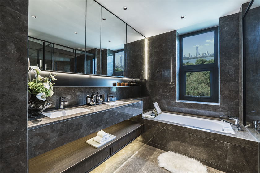 全南向主卧奢配独立更衣间与化妆台,让光影与木色温暖了私密个人空间。豪华主卫独立艺术浴缸,双台盆设计,超尺度玻璃镜面,奢阔尺度诉说生活的美学语言,散发优雅和精致之美。