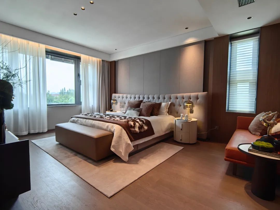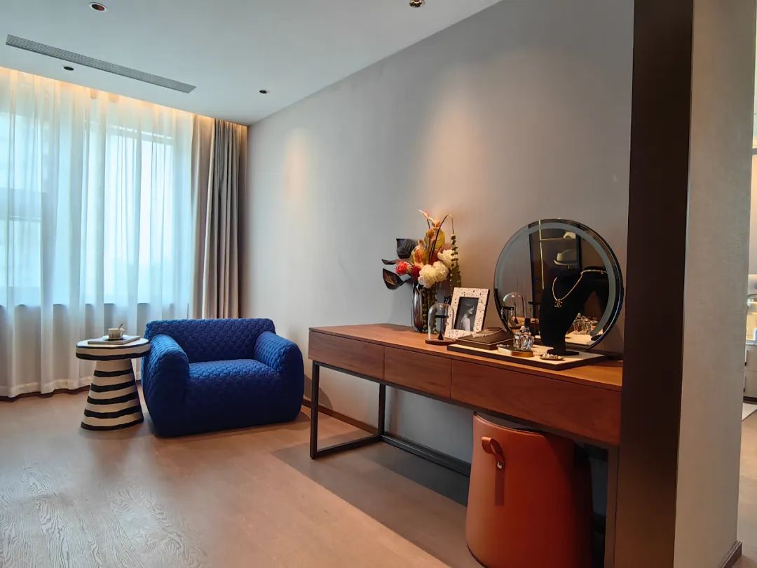 全南向主卧奢配独立更衣间与化妆台,让光影与木色温暖了私密个人空间。