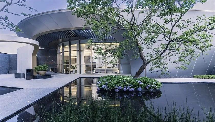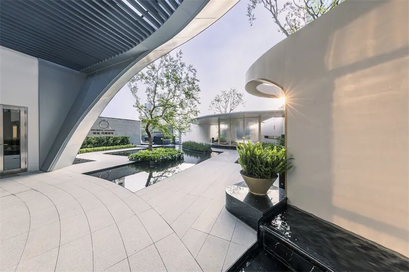 项目首创游艇型入户大堂,与立面层次感相呼应,外观上运用了大量的圆弧和曲面设计,整体形成流畅而具有张力的曲线序列,更显时尚大气,同时内部打造水上花园、摩登花园等六大归家场景,尊崇感拉满。