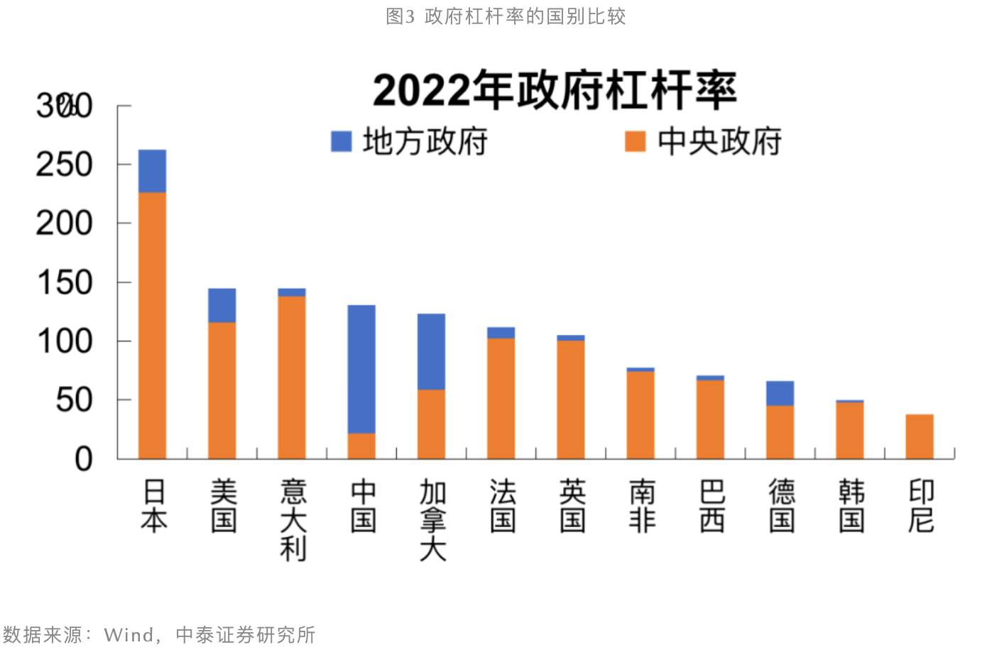 第一,降低债务成本。诸如通过财政部发行特别国债,或者允许地方政府发行再融资债;政策性银行或商业银行为地方政府提供低息资金来降低债务成本。总体来讲,我国政府杠杆水平并不算特别高,当前最具争议的地方是地方政府隐性债水平到底有多大。我估计,加上地方政府的各种隐性债(相应扣除企业部门债务),中国政府的总体杠杆率水平大约在100-120%之间,并不算高;相比美国的145%,日本的260%,中国政府杠杆率明显较低,同时也低于意大利、加拿大、法国和英国。