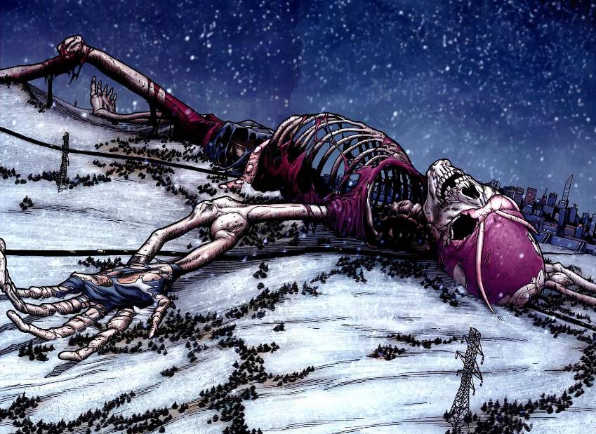 在50年前的屠杀中,众多超级英雄及反派死去,比如皮姆博士在巨人状态下死去,其尸骨已经成为了一条“隧道”。旁边的高压电线塔清晰看见,由此看见皮姆博士的巨人状态有多壮观。