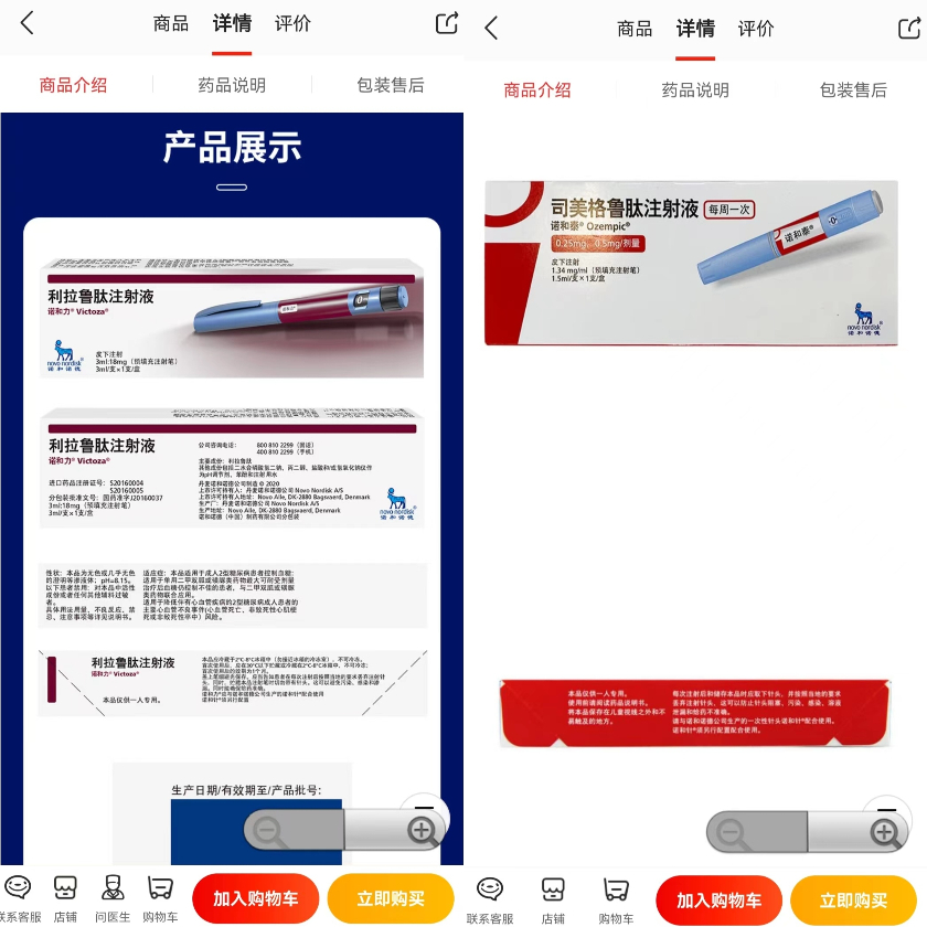 6月28日,记者分别在京东健康、1药网、方舟健客、叮当快药等平台搜索处方药。结果显示,目前,京东健康的自营店铺、入驻商家均显示了处方药的包装、标签信息。同时,通过处方审核前,可在页面,或通过包装图片看到适应症、用法用量等信息,但未展示药品说明书。