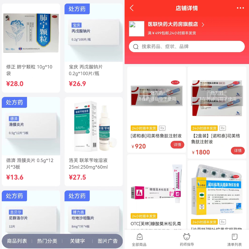 不过,值得注意的是,进入入驻商家主页则可看到,处方药包装图片信息均已模糊处理,仅显示药物通用名等基本信息。同时,京东健康自营的京东大药房主页则完整显示了处方药包装图片。