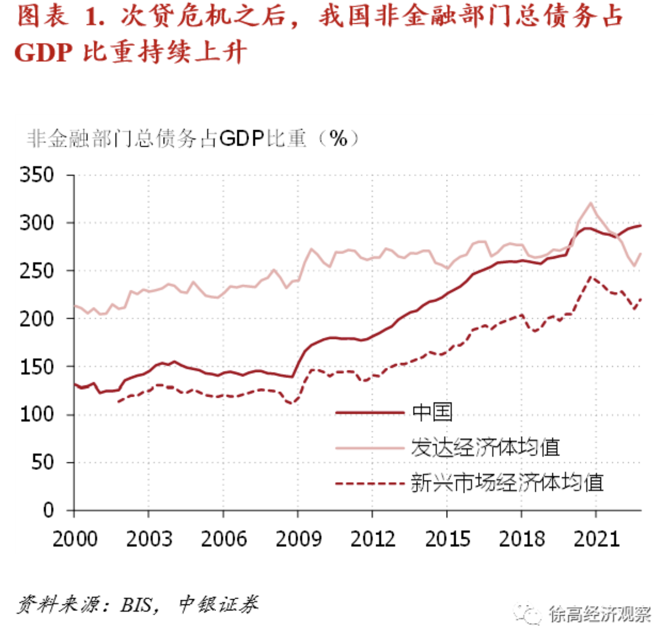 因此,我国因收入分配结构而来的消费不足、储蓄过剩、内需不足的状况会长期存在。对中国经济的分析需要基于这个宏观大背景而展开。脱离这个大背景而空谈债务,只能得到刻舟求剑的结论。