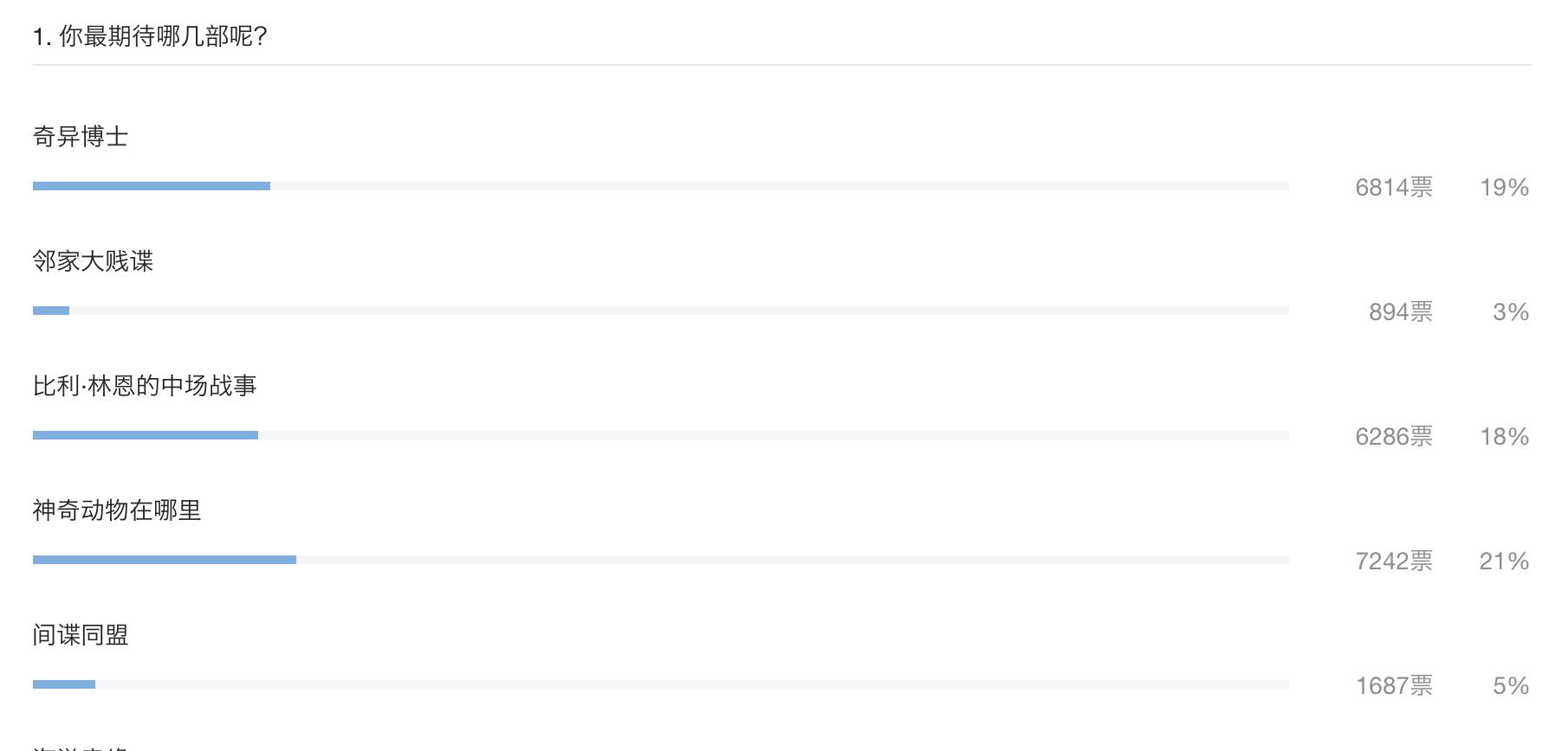 之前在微信发起11月院线新片投票,一万多人参与投票,其中有7000多人支持《神奇动物在哪里》,该片也成为本月最受期待的一部院线片。