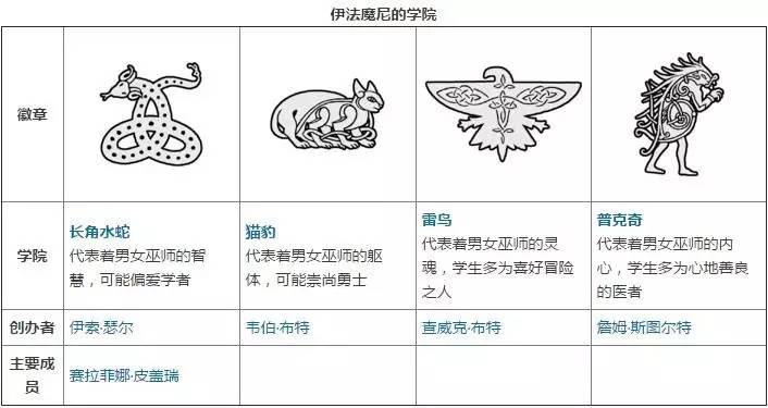 这所学校跟霍格沃兹一样,也设立4所学院,有趣的是,这四个学院的象征是学院创始人当时各自挑选了一个自己喜欢的神奇动物。