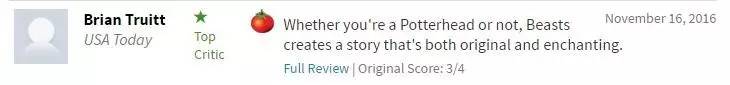 “不管你是不是波特迷,《神奇动物》都为你创造了一个迷人的故事!”
