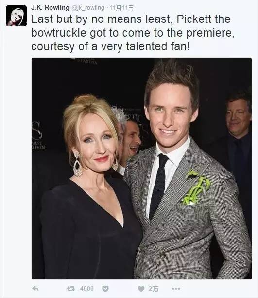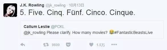同时她也在twitter上透露,《神奇的动物》系列将会有五部电影。