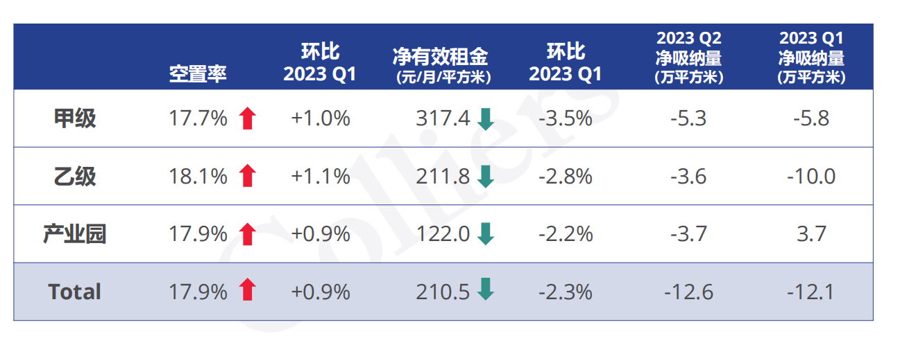 就甲级市场而言,由于下半年有一些预租较好的新项目入市,进而会拉动季度净吸纳量回升甚至转正,但无法扭转空置率上涨的趋势。