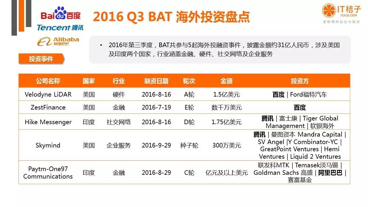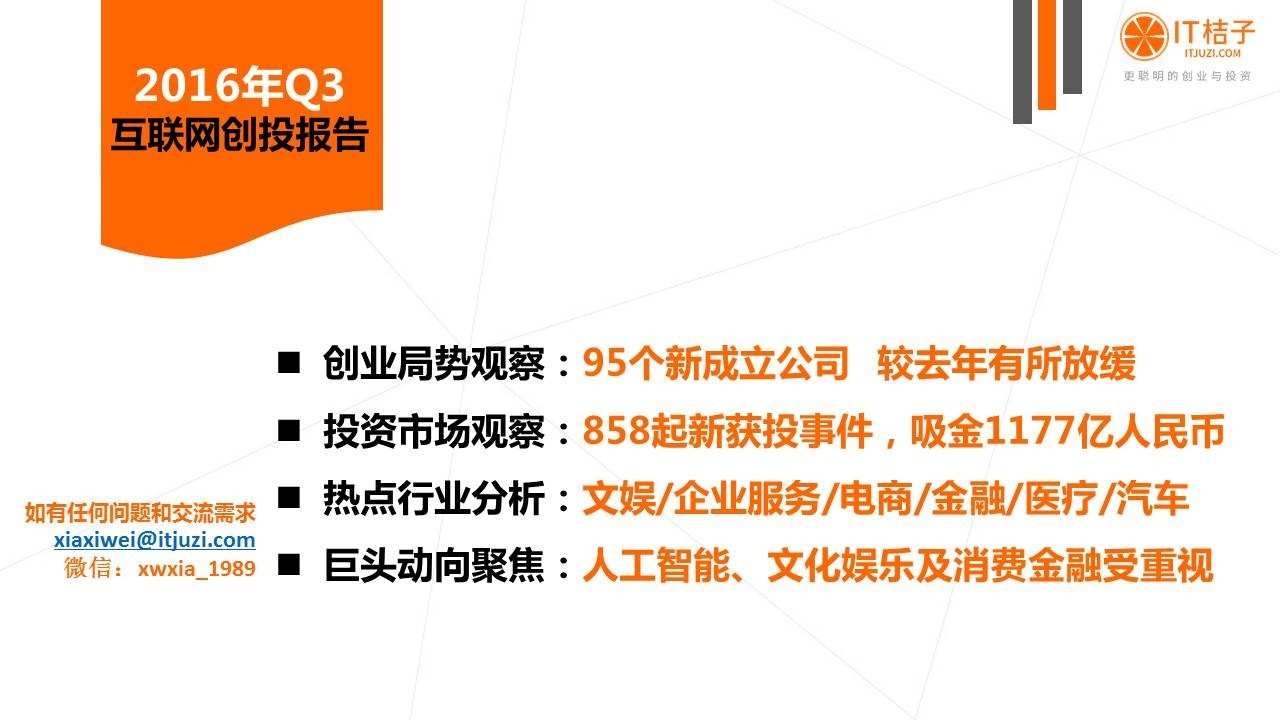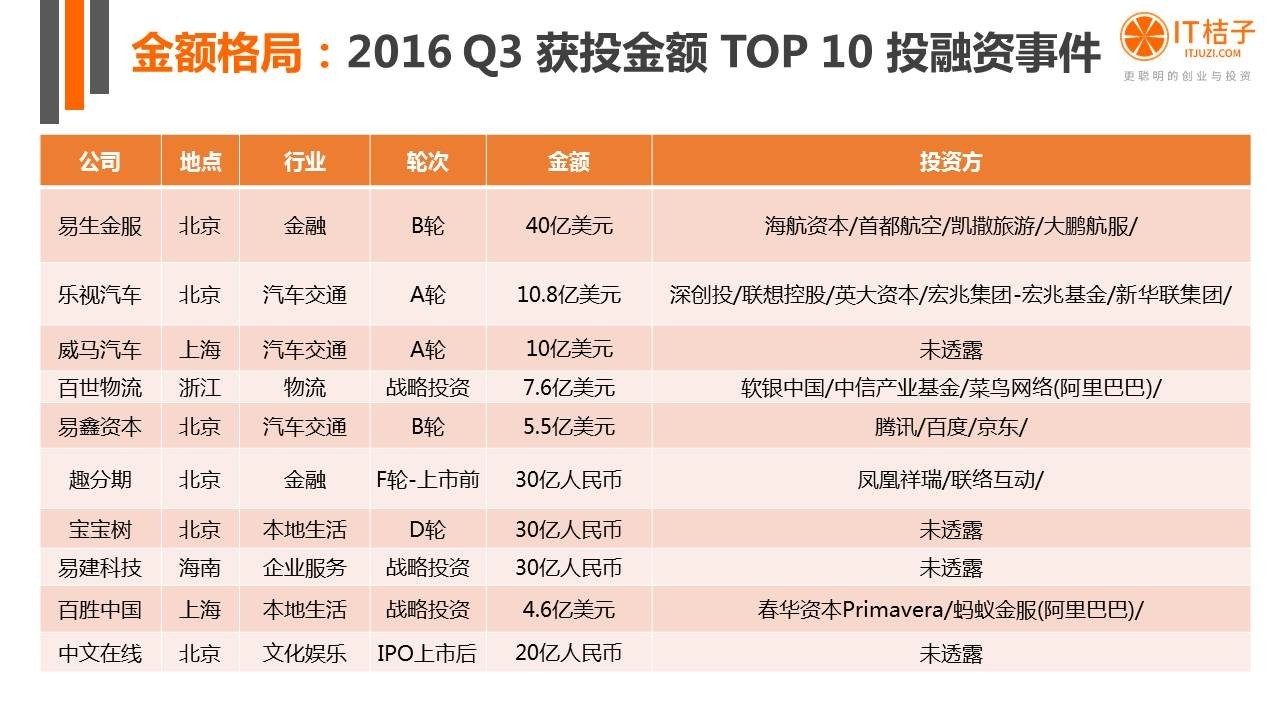 IT桔子2016年Q3互联网创投盘点已经出炉