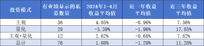 表格:2024年1-4月不同投资模式百亿私募收益情况