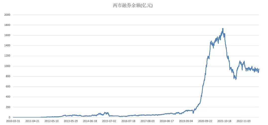 界面新闻统计了自2010年以来两市融券余额的变化情况,数据显示,在2020年以前两市融券余额基本都在150亿元以下,自从2020年以来两市的融券余额数量突然出现了爆发式的增长,从2019年年底137亿飙升至2021年9月1600亿左右,即使之后两市融券余额数据又有所下降,也基本都保持在1000亿元上下的水平。