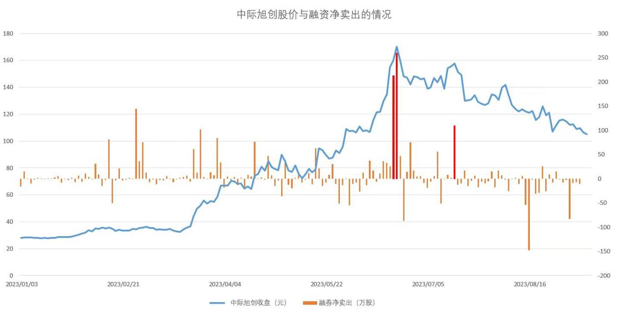 图:中际旭创今年以来股价走势与融券净卖出情况