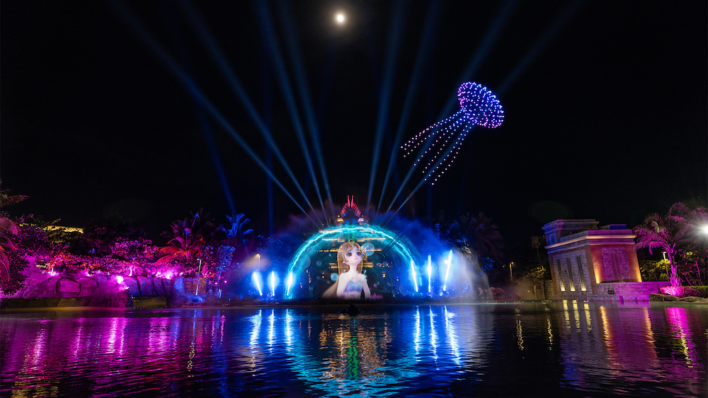 今年的超级暑假,上线了粉色之夜水幕秀,除了传统的音乐、激光等元素之外,还配备了实景美人鱼表演、无人机烟花和水上飞人的设计,提供更沉浸式的观影感受。水幕秀将呈现中国首位美人鱼虚拟体验官星娜和三亚·亚特兰蒂斯相遇的故事,她来自中国南海,拥有一头黑色的秀发,还会根据不同的传统节日更换国风鱼尾造型,是海南文旅产业的首位虚拟体验官。