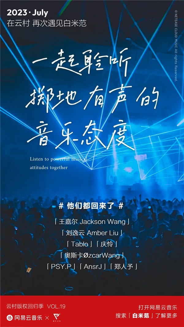 近日,网易云音乐宣布与RYCE白米范达成战略合作,王嘉尔Jackson Wang、刘逸云Amber Liu、PSY.P、庆怜等知名艺人音乐作品也上线云村。据悉,网易云音乐与RYCE白米范在艺人宣推、优质内容推广等领域均取得了瞩目的成绩,RYCE白米范旗下众多国际化音乐作品备受听众喜爱,特别在年轻群体中热度持续提高。未来,RYCE白米范旗下热门歌曲将上线网易云音乐,双方将充分发挥各自优势,为中国音乐爱好者提供更多优质音乐内容。