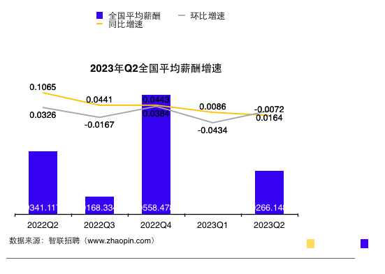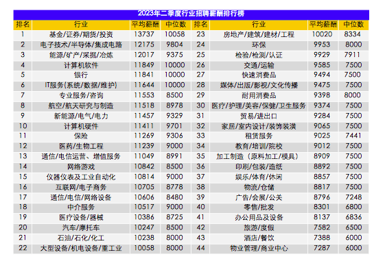 对于二季度平均招聘薪酬同比微降,报告认为,经济复苏期企业经营压力仍然较大,这导致用工成本增速放缓。2022年上半年,企业招聘薪酬的同比增幅约为10%,下半年降至4.4%,在今年一季度进一步下滑至0.9%,二季度则由增转降。