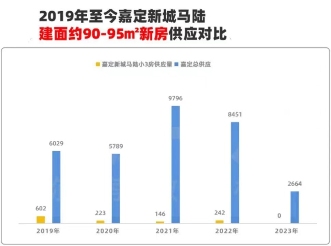 用数据说话,在上海市面上,建面约90-95㎡左右的小户型,已越来越少,数据显示,近5年时间建面约90-95㎡户型仅占嘉定总供应的约3%,而做边套产品的,则越发少见。(数据来源:安居客)