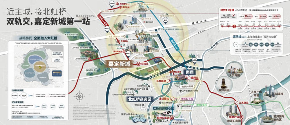 而且从南翔站,还能换乘嘉闵线(在建中),3站到虹桥商务区、7站抵闵行七宝!
