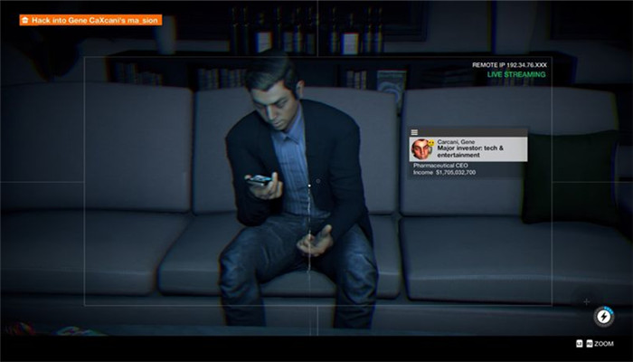在游戏的早期任务中,有一个角色很显然是基于美国声名狼藉的医药商人、嘻哈组合武当派(Wu-Tang Clan)的粉丝马丁·什克雷利(Martin Shkreli)所改编而来。和马丁·什克雷利一样,《看门狗2》中这一名为吉恩(Gene Carcani)的人物因制药生意而致富,他还碰巧也是嘻哈说唱音乐的忠实粉丝。吉恩最爱的歌手要向这位百万富翁售卖一张独一无二、绝不会卖给他人的专辑,相关任务需要你在吉恩和他最喜爱的说唱歌手间伪造一通电话。玩家所在的黑客组织DeadSec的目的并不是为了将吉恩梦寐以求的专辑骗到手上,而是为了确保吉恩的钱最后会被赠予慈善机构。