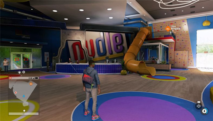 和我们的世界一样,“谷歌”也渗入到了《看门狗2》中的方方面面,只不过在这里面它叫做“Nudle”。你将使用“Nudle地图”来进行导航,游戏中的新闻报道中也会为你更新有关这家公司生意动态的消息,包括诸如收购初创公司进入汽车行业这样的新闻。你甚至还可以访问这家公司的园区,几乎一切你能想象得到的一家庞大科技巨头所应有的东西,里面应有尽有。