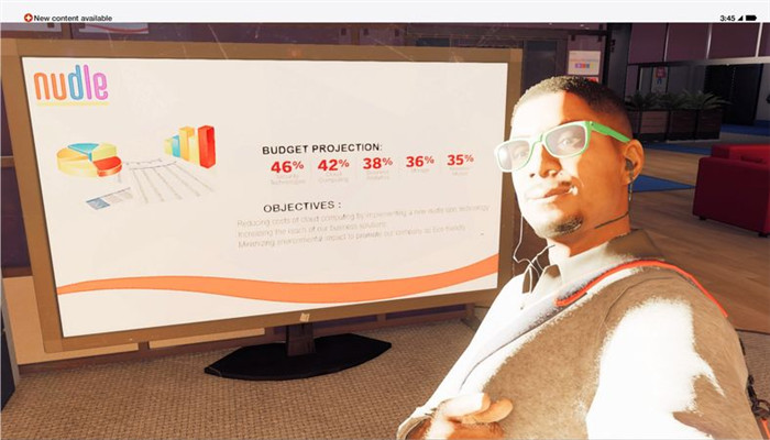科技工作者们在休息室里戴着VR眼镜娱乐。
