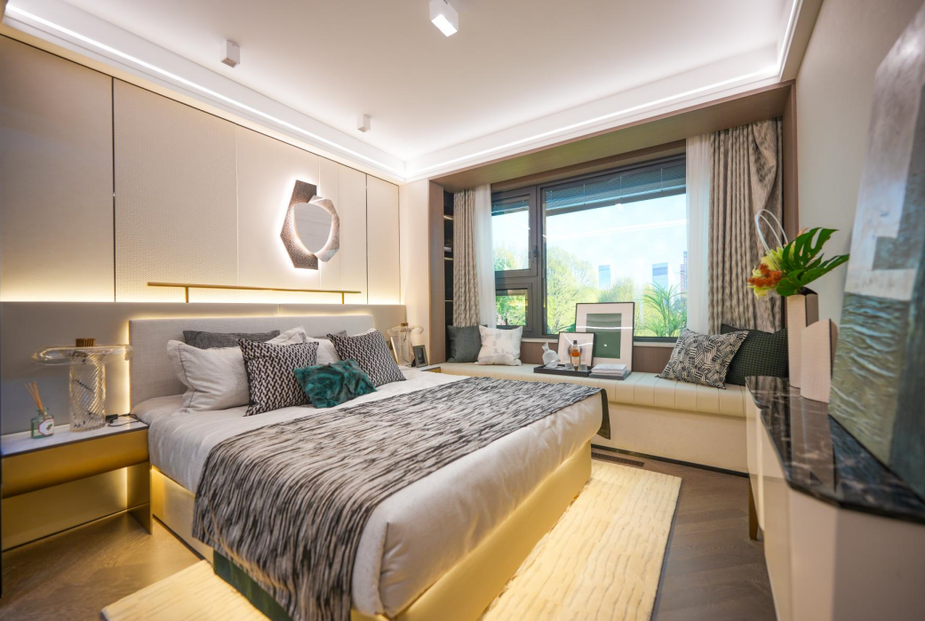 约3.9米开间的主卧套房,带有衣帽间和独立卫生间。