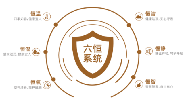 保利招商文璟和颂配置六恒科技人居,采用恒温、恒湿、恒氧、恒静、恒智,定制毛细官网辐射恒温舒适,新风地送顶排,让居住回归舒适。