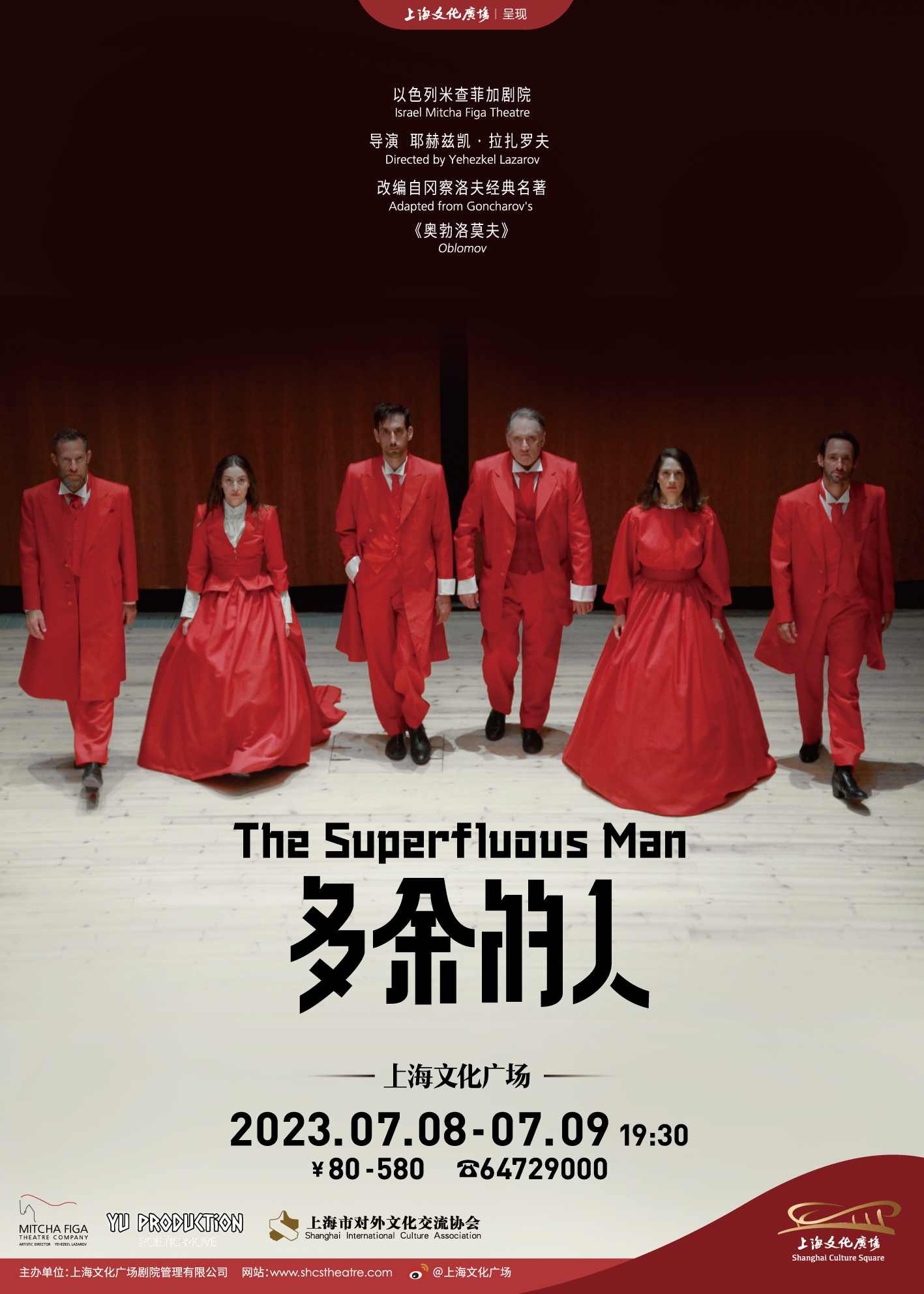 7月,上海文化广场首届“以色列戏剧展演”拉开帷幕,原创戏剧作品《多余的人》将率先与观众见面。《多余的人》改编自俄罗斯作家冈察洛夫的经典名著《奥勃洛莫夫》。主人公奥勃洛莫夫是一个正直、单纯、善良的人,但却懒惰、不切实际、浑天度日,最终在浑浑噩噩中走向自我毁灭。这部作品给俄语带来了“奥勃洛莫夫性格”这个新词汇,也让“多余人”成为一个经典文学符号。以色列著名导演耶赫兹凯·拉扎罗夫发现了《奥勃洛莫夫》与当代“倦怠社会”的相似之处,改变创作了《多余的人》并于2022年新年在特拉维夫首演,在以色列国内获得高度赞誉,被称为“一场令人身心振奋的文化事件”。