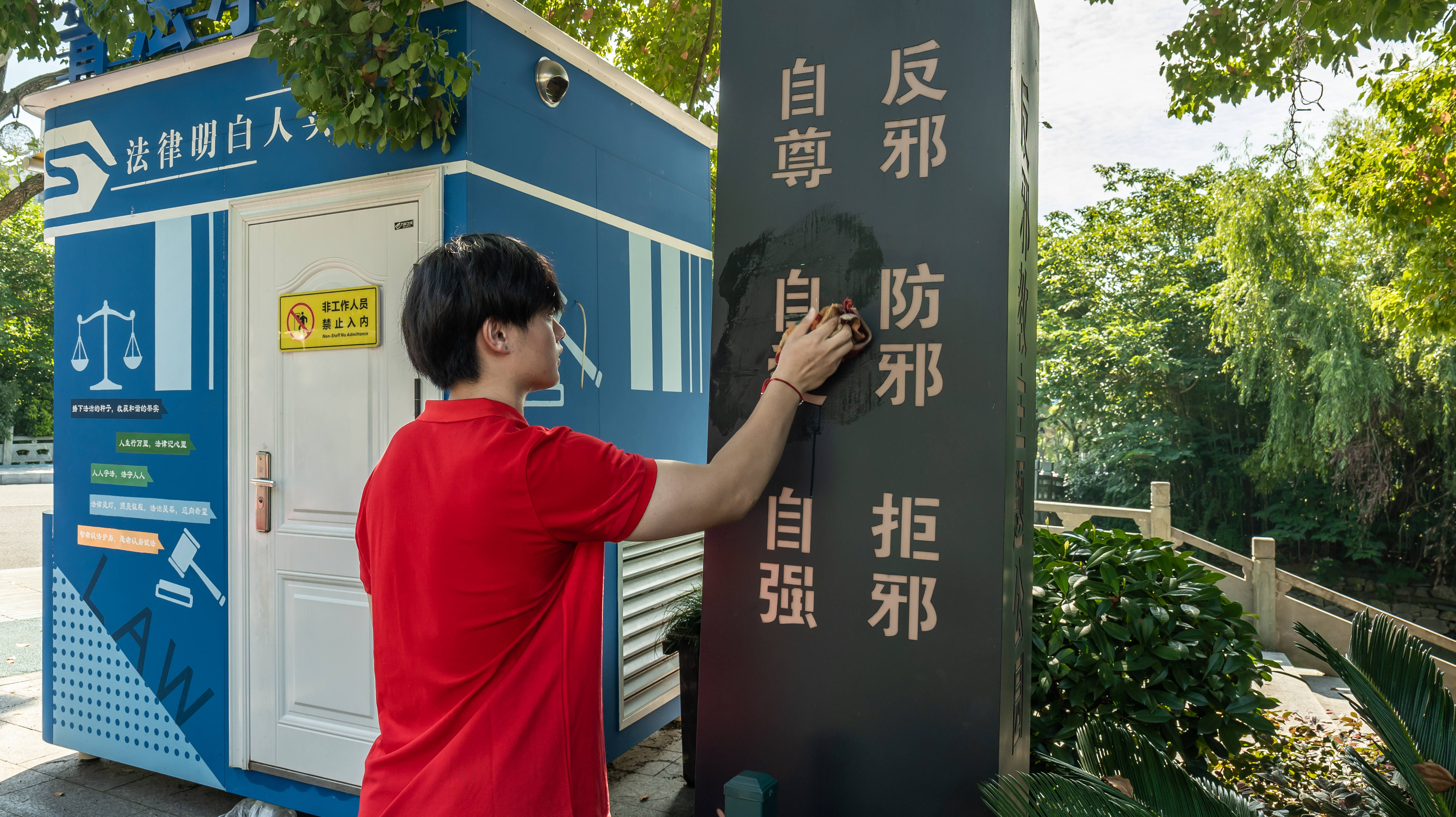 值得一提的是,宁财院的大学生们不仅给当地居民带来了一场题为“学习思想跟党走 反邪实践建新功”的专题宣讲,还主动打扫清理了当地反邪教主题公园,“做好反邪教宣传,不仅要讲好反邪教案例、传递反邪教声音,更要积极维护好反邪教场所,守好反邪教阵地。”实践团队中的退役军人胡同学介绍,下一步他们还将依托学校法治宣传教育基地力量,走进更多村镇街巷,开展形式更为丰富的法治宣讲、安全宣讲、科普宣讲,发扬退伍军人退役不褪色的光荣传统,继续在反邪教反诈骗战线上守护人民群众生命财产安全。