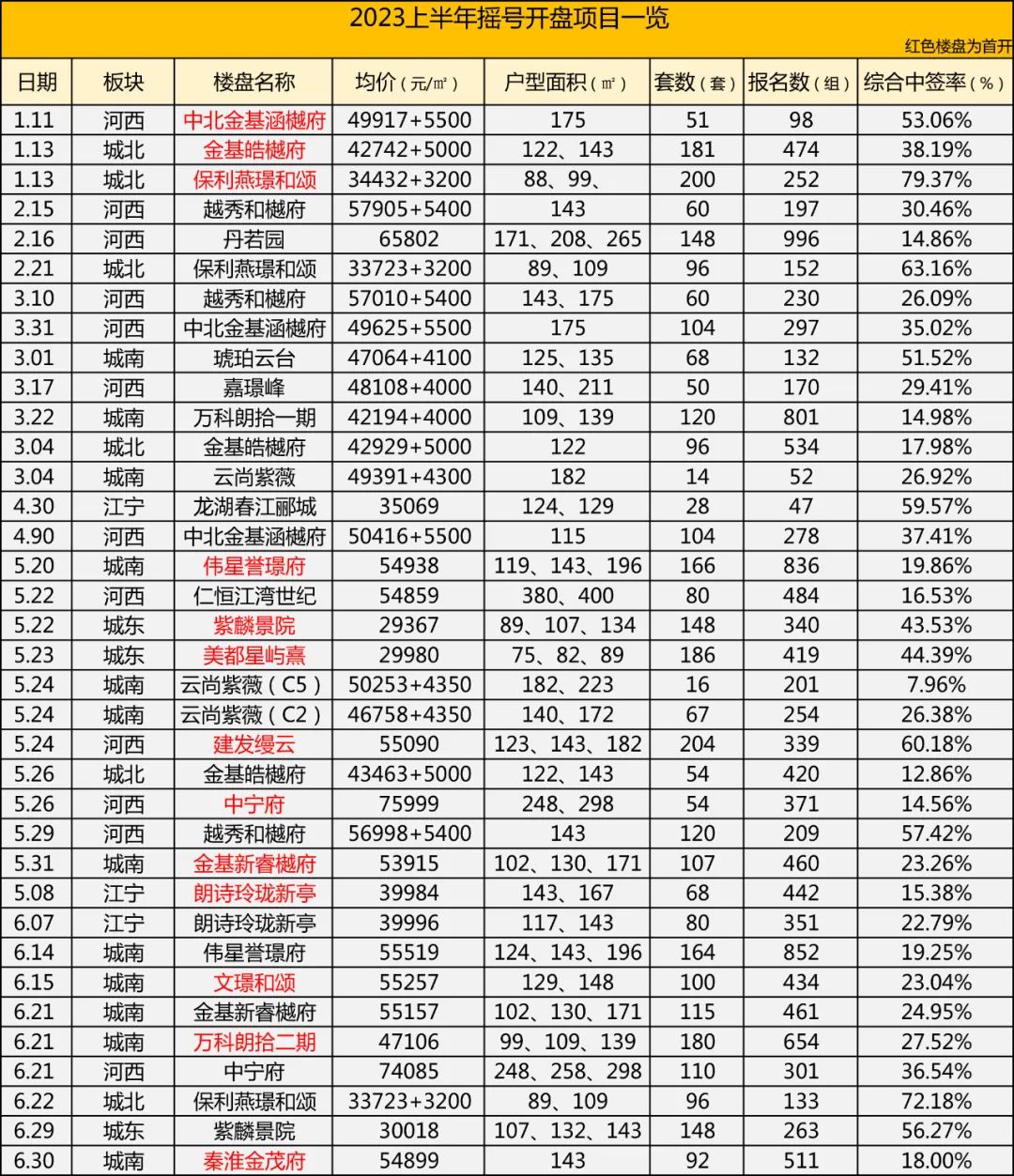 2023上半年摇号楼盘一览