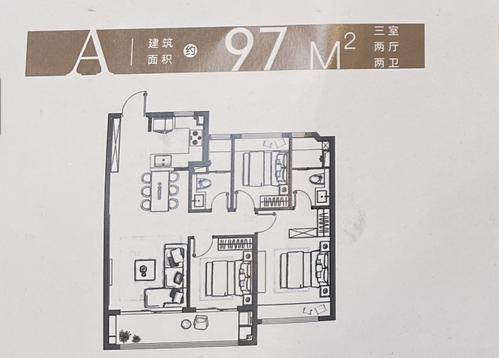 建面约99㎡三室两厅两卫
