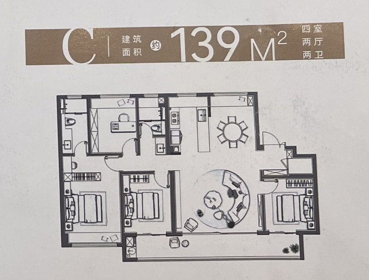 建面约139㎡四室两厅两卫