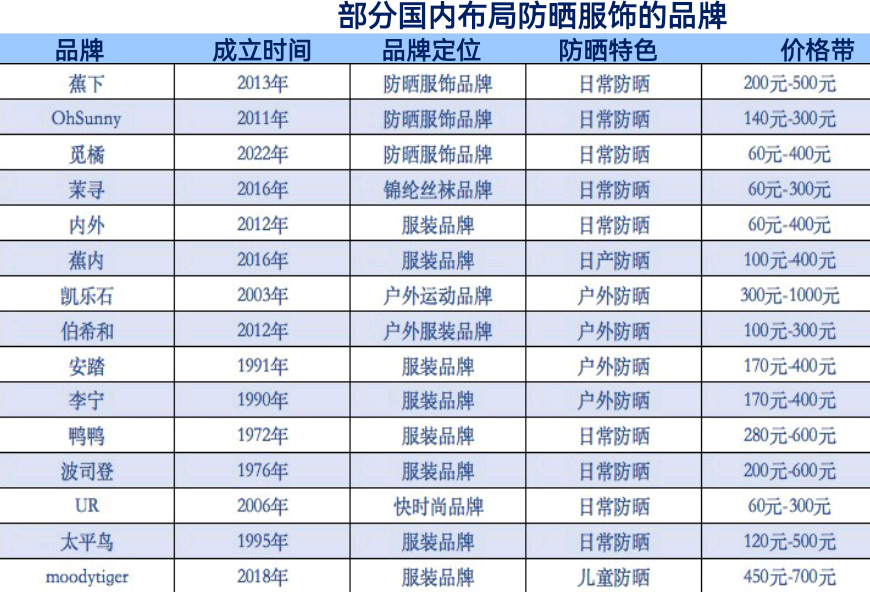 “这两年,跨界进入防晒市场的国产品牌越来越多。”徐正总结,大致可以分为三大阵营:专业防晒品牌,如蕉下、觅橘等;跨界服装品牌,如安踏、李宁、波司登等;快时尚品牌,如UR。