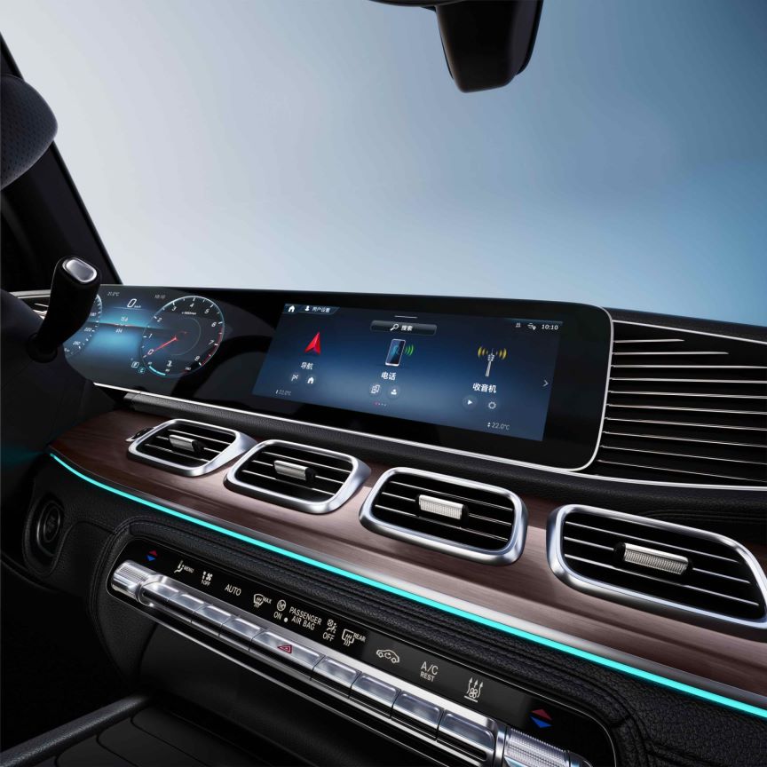 新一代GLE SUV全系标配Nappa皮饰多功能方向盘,双手无需离开方向盘,即可通过触控面板来操作车辆的关键功能。空调出风口叶片升级为镀锌金属材质,源自梅赛德斯-迈巴赫GLS SUV的工艺。后排座椅电动调节功能提升了乘坐体验。
