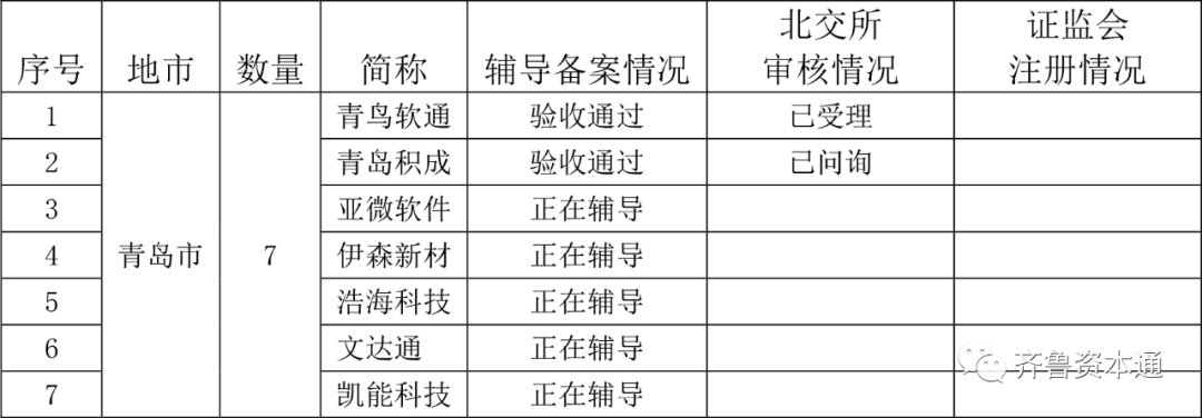 齐鲁资本通统计,青岛共有7家新三板公司拟申请公开发行并在北交所上市。