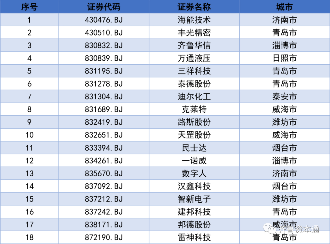 齐鲁资本通了解到,青岛市目前有北交所上市公司5家,因此山东省共有北交所上市公司18家。