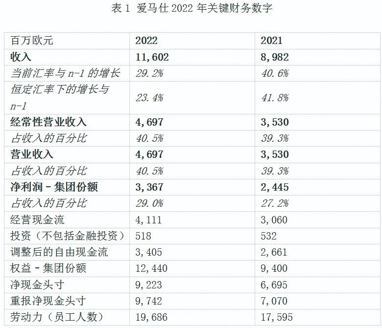 表1 爱马仕2022年关键财务数字