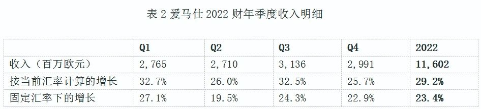 表2爱马仕2022财年季度收入明细