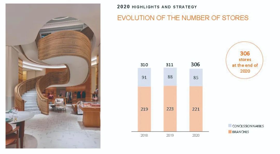 上述财报显示,保持稳健的店铺数量是爱马仕业绩的关键,即使遭遇疫情的冲击,但是爱马仕依旧如此。回顾2018-2020年,店铺的数量始终维持在310个左右,见图1。