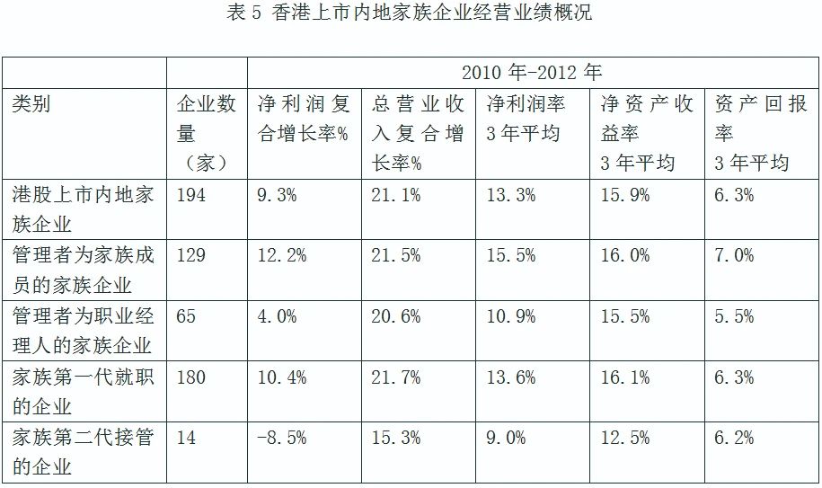 表5 香港上市内地家族企业经营业绩概况