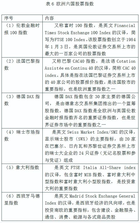 表6 欧洲六国股票指数