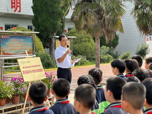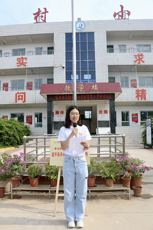 为深入推进学习贯彻习近平新时代中国特色社会主义思想主题教育,引导和帮助广大青少年学生上好与实践相结合的“大思政课”,7月11日,青岛职业技术学院第一支“三下乡”社会实践队伍——旅游学院“立人圆梦”社会实践志愿服务团队在陕西省富平县吕村小学举办“七彩假期”夏令营开班仪式,顺利开启青岛职业技术学院2023年大学生志愿者暑期“三下乡”社会实践活动。中国少年先锋队富平县事业发展中心主任师增亮,吕村小学、青岛职业技术学院旅游学院相关负责人以及师生代表共计200余人参加了开班仪式。