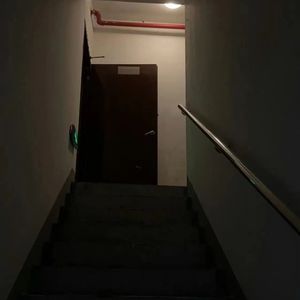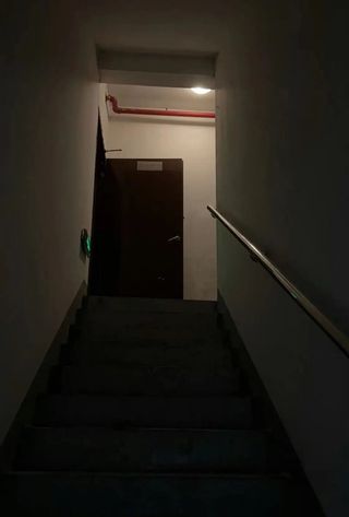 天还没亮,一位爬楼人已经出现在了楼梯间