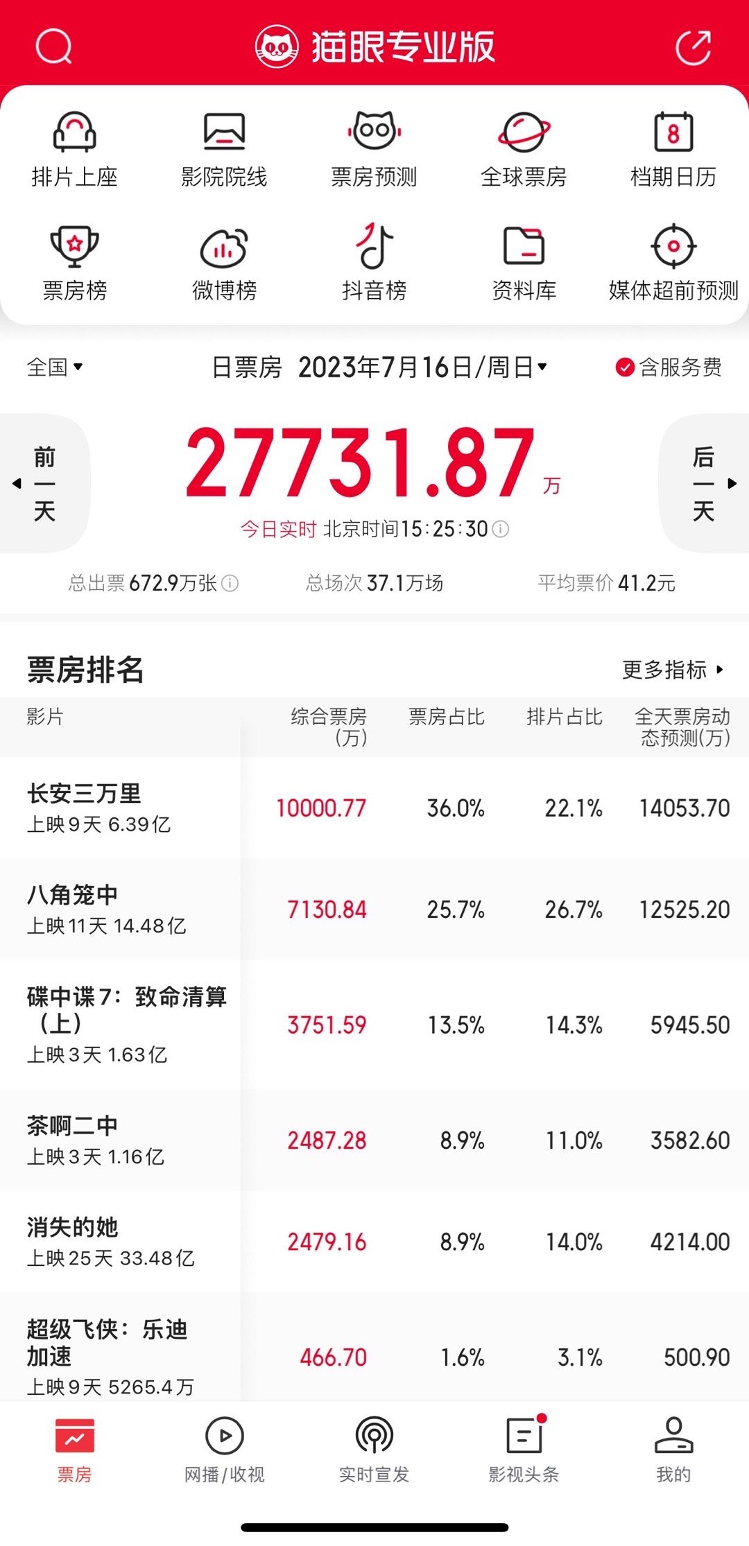 7月16日,据猫眼专业版数据,电影《长安三万里》上映第9日,单日票房再次突破1亿元,连续2天单日票房突破1亿元。