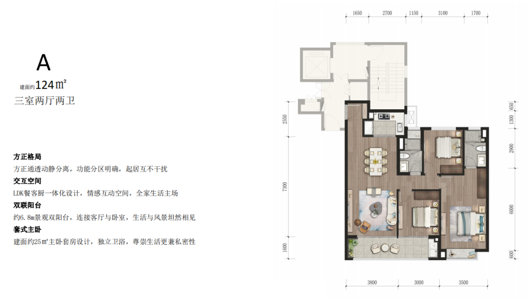 至于装标方面,项目无升级包,三大件交付,美的中央空调,威能地暖,朗思威新风。