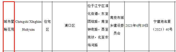 据南京民政局官网信息显示,江核商务区G03备案名为“江和花园”;江北研创园G10地块备案名为“城市星皓雅园”;浦口国资G59地块备案名为“城市星瀚花苑”。