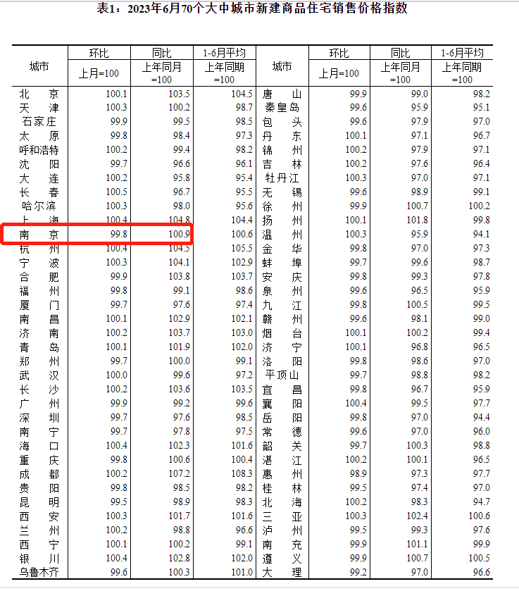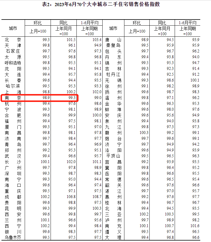 上周六(7月15日),国家统计局发布2023年6月全国70城房价指数。数据显示,2023年6月南京新房价格环比下跌0.2%,同比上涨0.9%;二手房价格环比下跌1.1%,同比下跌0.7%。值得注意的是,新房、二手房环比双降!南京新房价格已经连续2个月下跌!